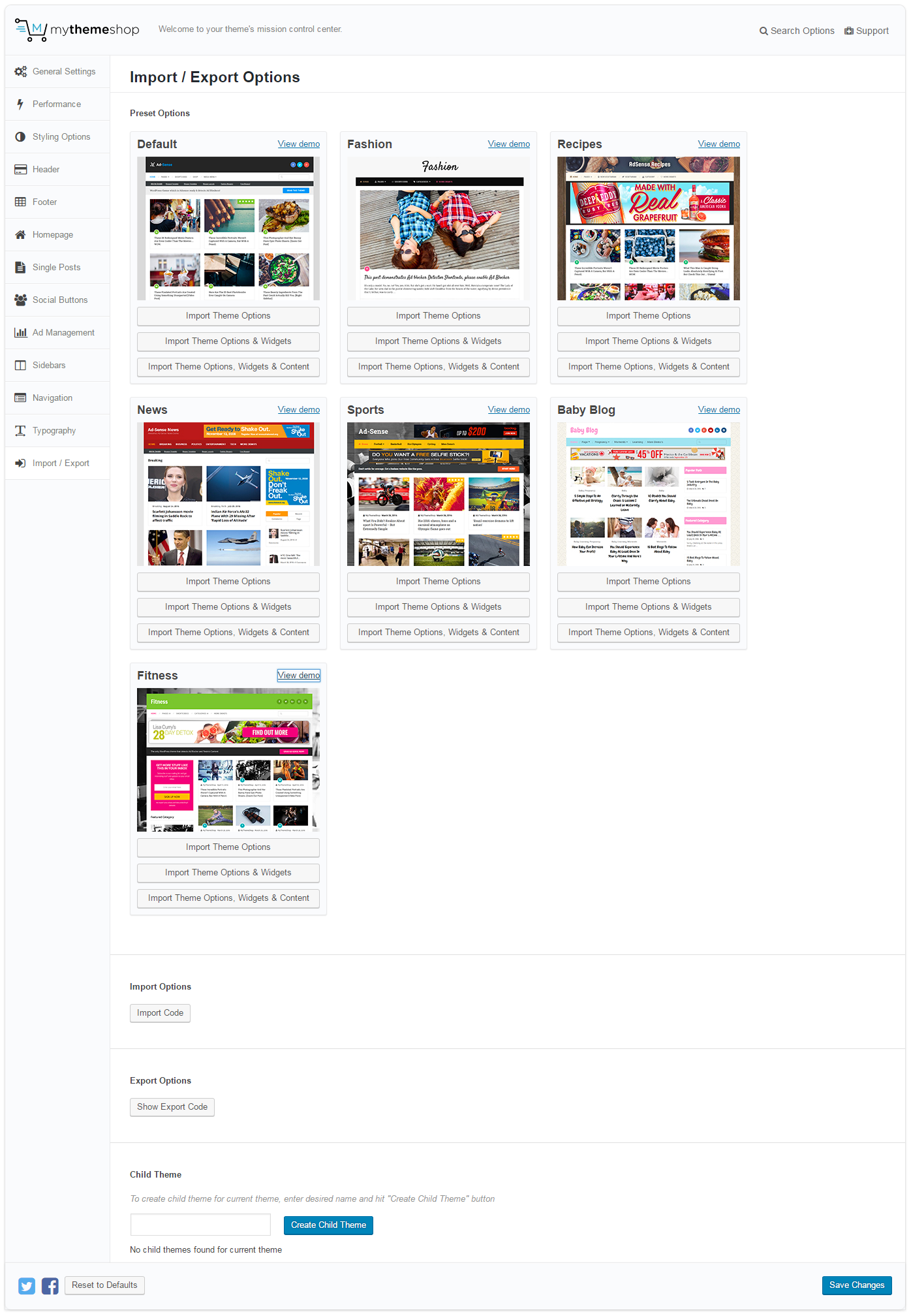 Import/Export Settings